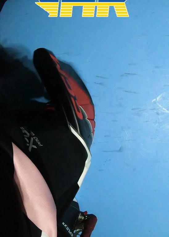 Top view and super slow motion of the CCM EFlex 6 Total Custom pads and the puck machine.