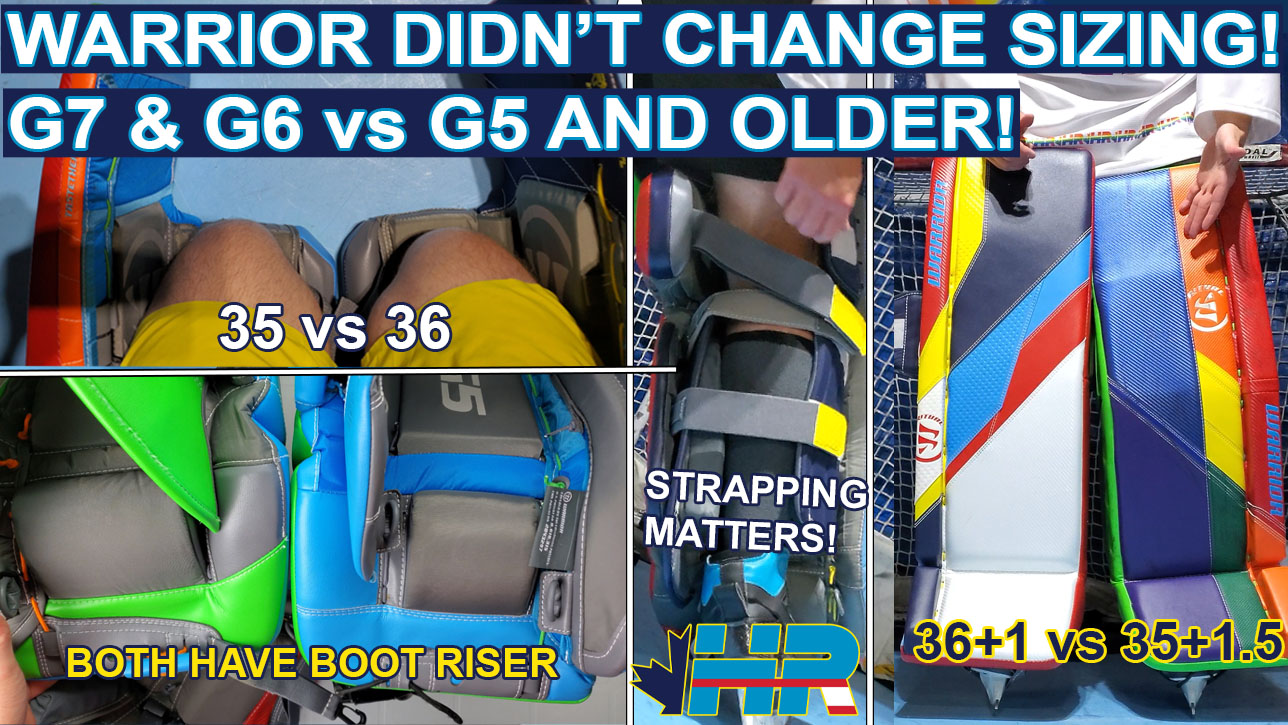 Just like the strapping in the Bauer Supreme Mach pads, which pulled the pad closer and up your leg, the new inner upper calf straps on the Warrior G6 and G7 pads can make the pad feel like it plays “bigger” than it really is. But adjust the strapping and the pad still fits the same size as always.