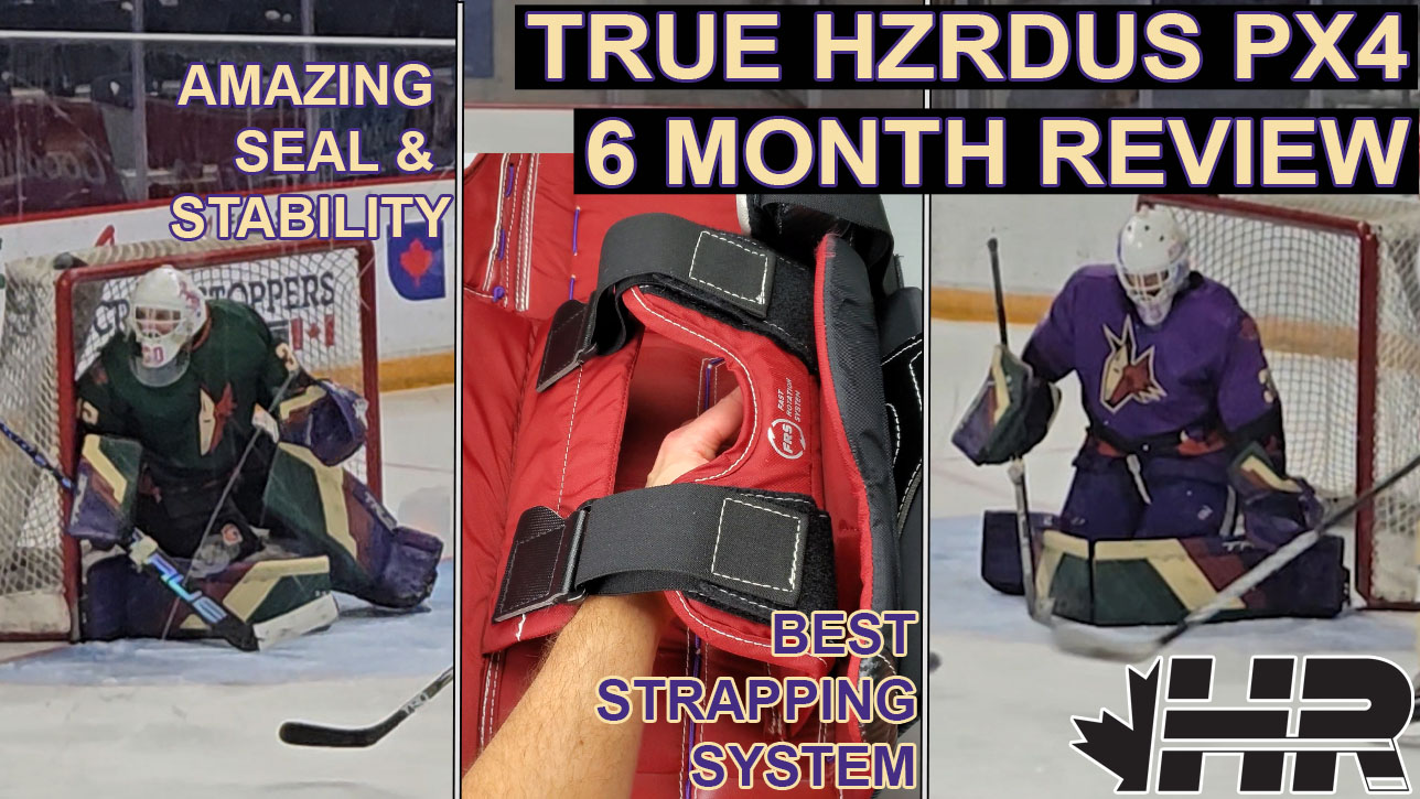 When I got my True Hzrdus PX4 custom set of hockey goalie gloves and pads, it was unfortunately right during playoffs of my hockey leagues. So I didn’t get a real chance to test them out and put them through their paces. When I got the pads, I did a comparison review between the more traditional True Catalyst PX3 and the more butterfly and stiffer Hzrdus PX4. Which you can watch here on YouTube!