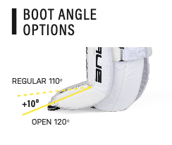 One of the most common questions I get asked when people are looking at and ordering custom True hockey goalie pads is specifically the different boot break angles. True has 2 different break options, the Regular 110° and Open 120° boot angles.