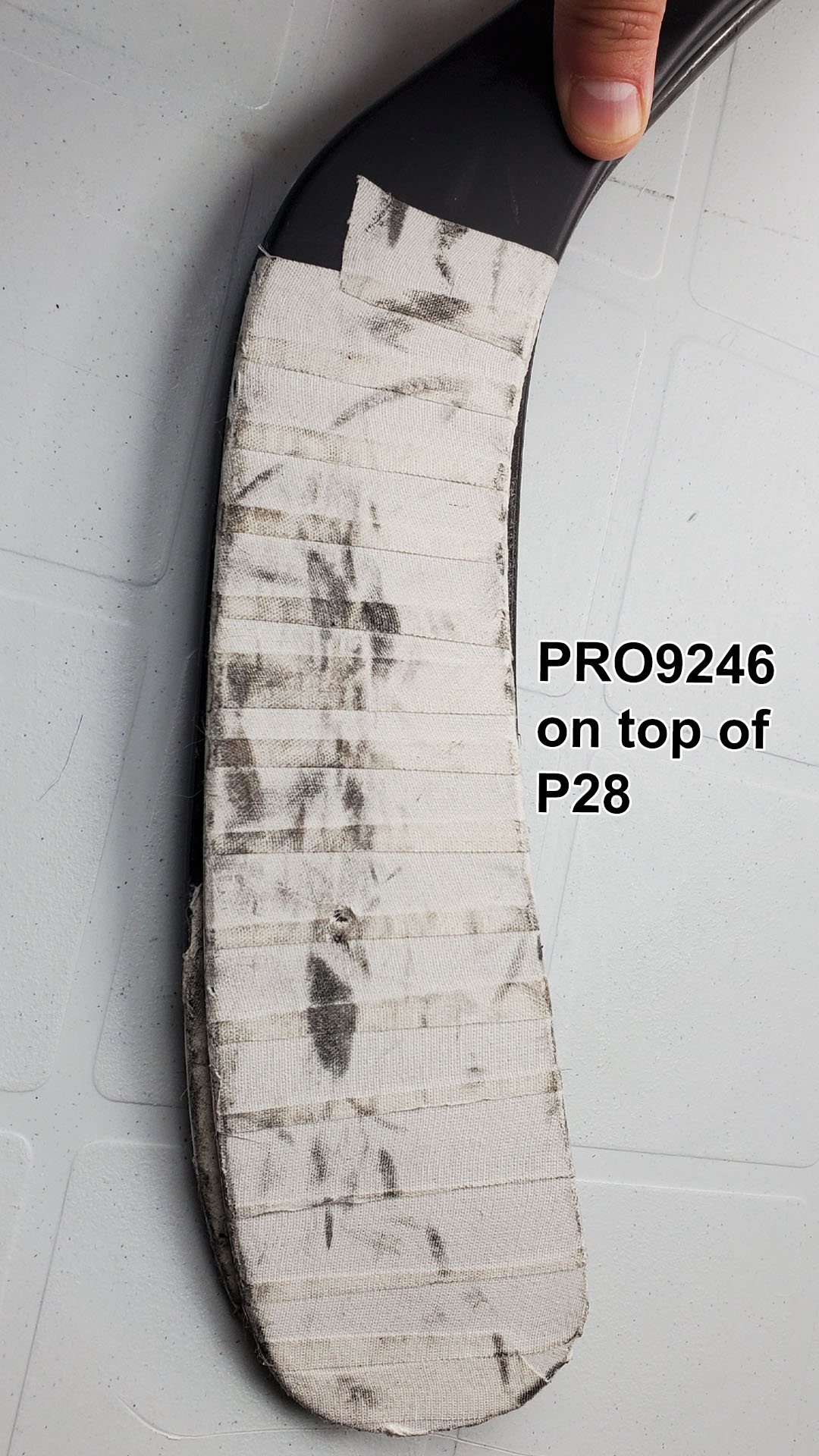 I know people will always ask “what curve is better for stick handling” and the only answer to that is purely “that depends.” People coming from P28 will probably have a more difficult time going to the PRO0246 for stick handling compared to P92 users because P28 skaters will be more used to the blade contact. It has to be said that the more aggressive toe curve on the P28 helps with toe drags and stick handling on the front of the blade, so having that feature on the PRO9246 brings that excellent cradling the puck ability the P28 is know for. But I can see P28 users finding they are losing the puck because of the rocker, which the below images should show the difference in the blade shape of the P28 with the PRO9246 on top of it.